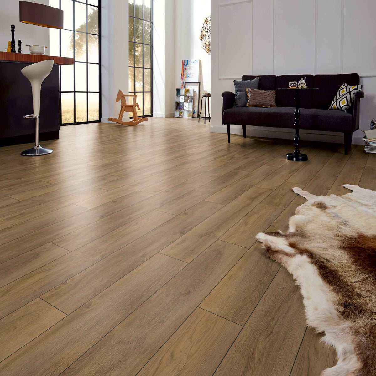 Attractiveness, sustainability and user-friendliness – these are the principal criteria when it comes to picking out a floor covering. KRONOTEX is one of the leading makers of laminate flooring, offering you exceedingly eco-friendly, healthy products. “Made in Germany” enjoys an excellent reputation all over the world, thanks to the high international standing of German engineering. And KRONOTEX ranks amongst the leading firms employing advanced technology.