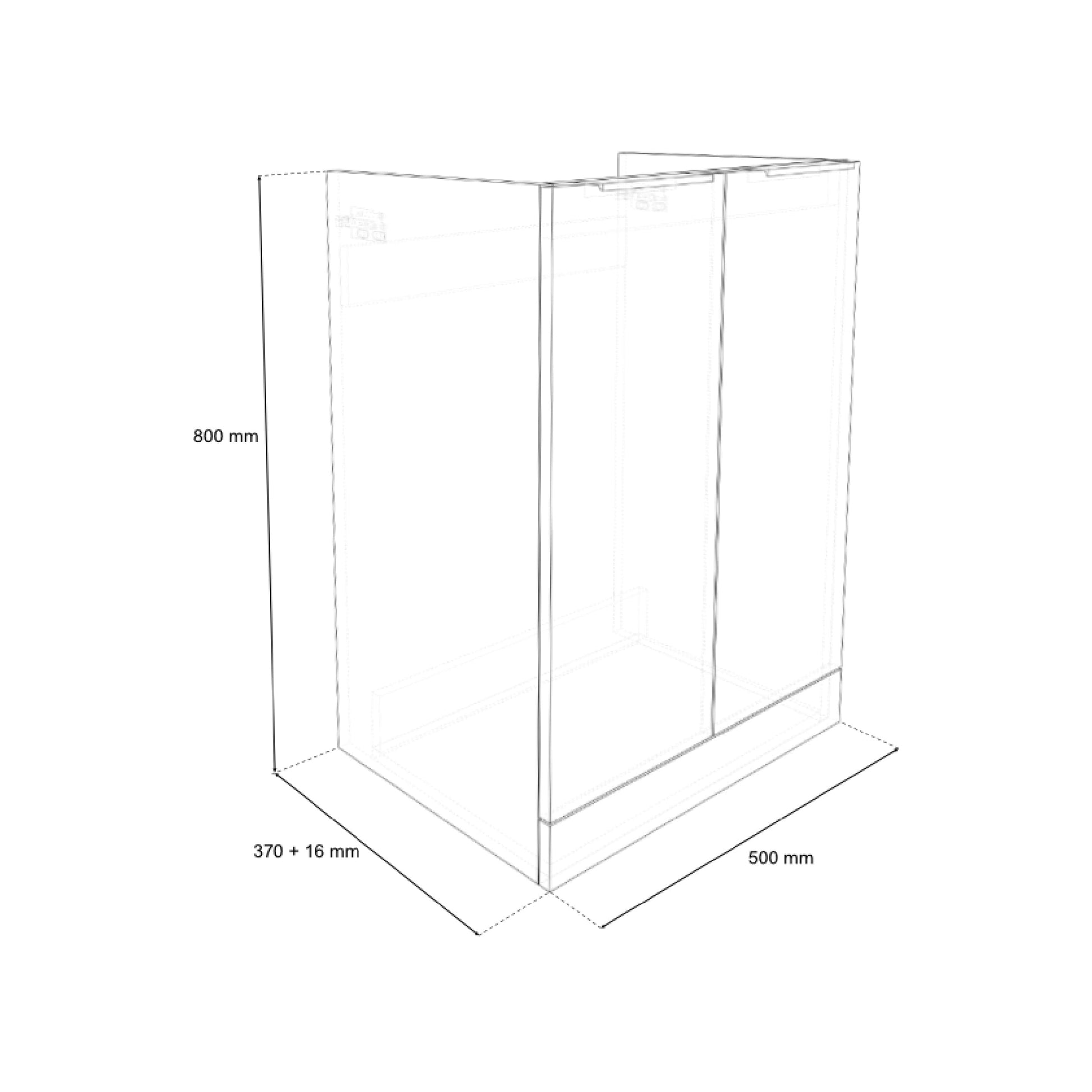 Dimensions (excluding basin): (W) 500mm x (H) 800mm x (D) 386mm